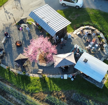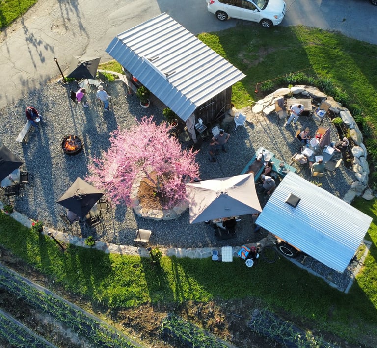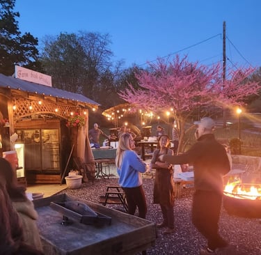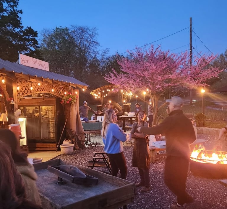 Enjoy fresh wood-fired pizza with organic sourdough crust, surrounded by blooming gardens and friendly farm animals.